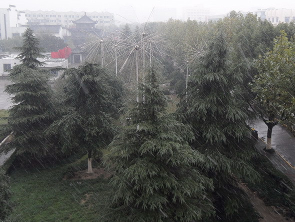 前幾天只是小小的雨夾雪...雨中參雜著點點的雪花...