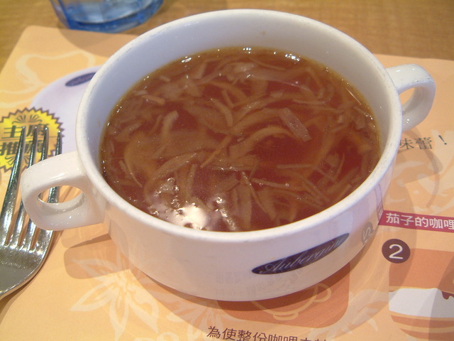 湯品則是「洋蔥湯」,應該是洋蔥加上牛肉湯去燉煮的,喝起來還可以。