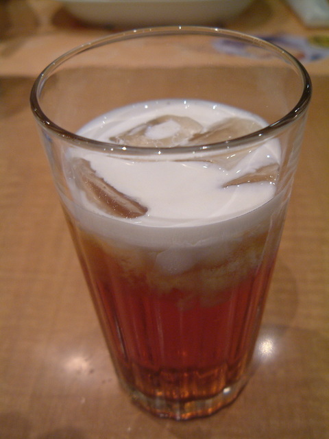 自己將奶油球倒入冰紅茶後,就成為冰奶茶了~~